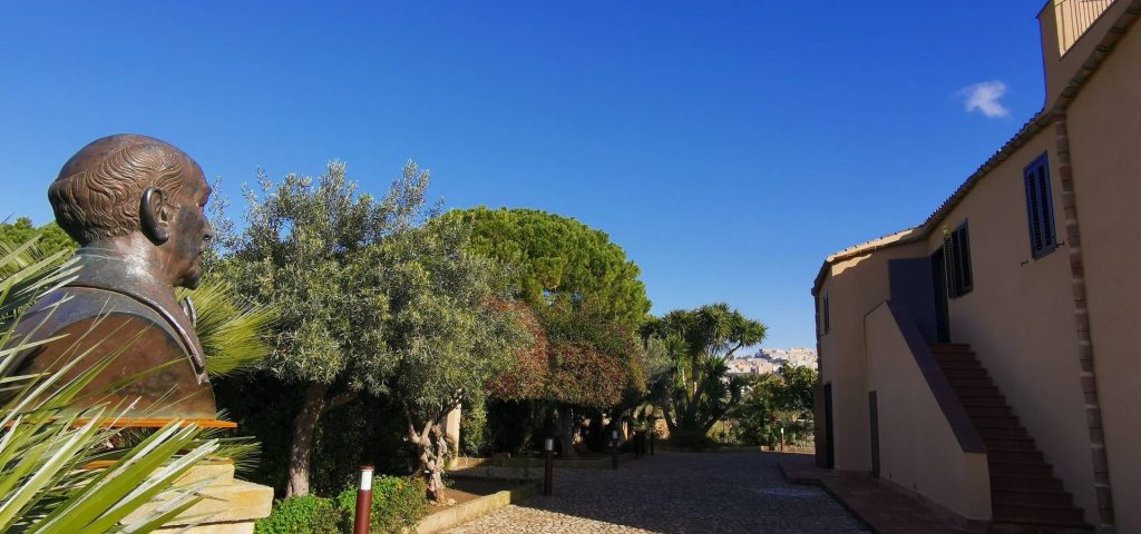 On a plain overlooking the sea, in the countryside between Agrigento and Porto Empedocle, lies a solitary country house: this is where the Nobel playwright Luigi Pirandello, one of the most prominent literary personalities of the twentieth century, was born. After the recent maintenance, adaptation and removal of architectural barriers, the Pirandello house-museum now also offers an immersive and multimedia itinerary, audiovisual archive materials and specially composed music. The narrative voice of Leo Gullotta guides the visit between the different locations. A Smartphone application allows you to enjoy, both inside and outside the museum, various in-depth content including texts, audio and augmented reality. Soon after the second world war the house was restored for the first time and in 1949 it was declared a national monument and turned into a museum. To this day it exhibits manuscripts, photographs of the Pirandello family and memorable moments of the playwright’s life, personal letters, a collection of programs and posters of theatrical productions and much more. This is the perfect spot to start a literary journey and explore the places, rooms and countryside which have inspired Pirandello’s creative imagination. A documentary film allows visitors to view the most significant events in Pirandello’s life, such as the ceremony of the Nobel Award in 1934. His ashes are buried under a large stone not far from the dwelling where he was born, according to his last will: ”take my ashes to Sicily and seal them in a rough rock in the countryside of Girgenti, where I was born.” In the centre of Agrigento there is a Library dedicated entirely to his work: it is located in via Imera and contains all his books and many precious documents. The Municipal Theatre, situated in the Municipality in Piazza Pirandello, is also entitled to Luigi Pirandello and is open to visitors.