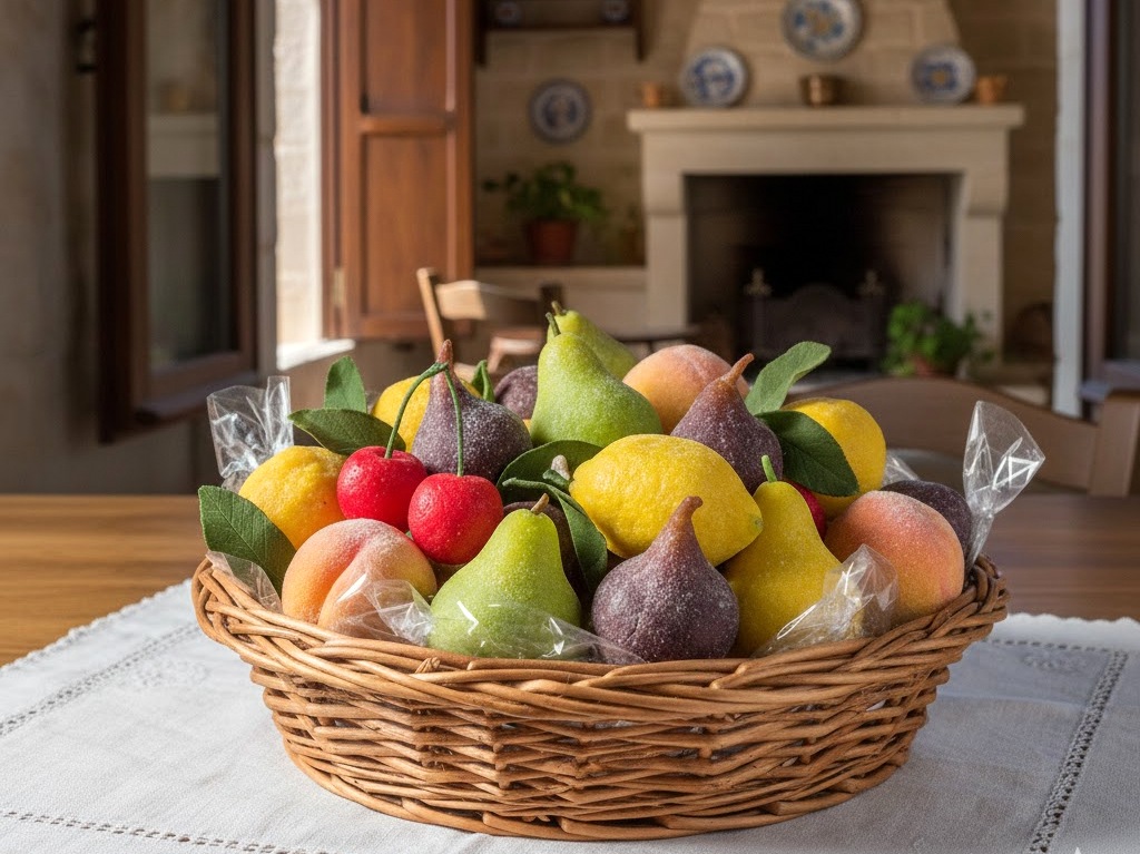 In the autumn months the shop windows of Sicilian pastry shops are filled with these colorful delicacies to celebrate the Feast of the Dead, a family custom linked to respect and love for deceased family members which recurs on November 2nd. On the eve of the Feast of the Dead, while everyone is asleep, the dead bring their gifts to their (grand)children: baskets full of presents, sugar puppets, biscuits and marzipan fruits. In the morning when the children wake up a joyful treasure hunt for the presents starts: everybody knows that grandparents love to play with their grandchildren and even when dead they enjoy hiding their gifts on high cabinets and under the beds. This ancient family tradition has been handed down in Sicilian families over the centuries and is a very sweet and simple ritual that maintains the bond between generations strong and affectionate.